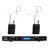 Awisco UHF 2 Channel 64 User Selectable Frequency Beige Color Mini Headset Wireless Microphone, Low Power Consuming and Rackmountable Design.